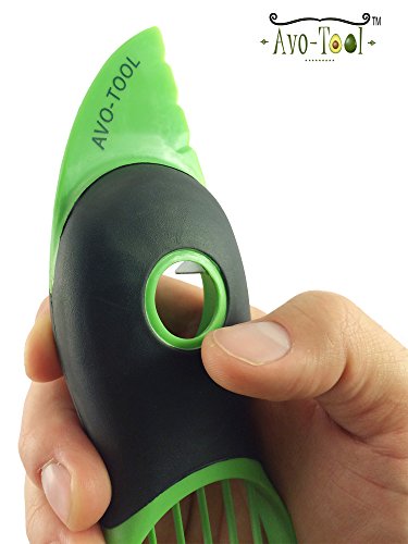 AVO-TOOL Avocado Slicer: It's no secret that avocados are healthy and full of good fats! Make preparing your favorite avocado recipes simple and fun with the AVO-TOOL. There are 4 uses for the AVO-TOOL: Make splitting, pitting, slicing, and scooping easy, safe, and efficient with the multi-purpose AVO-TOOL. The BPA free serrated knife blade easily cuts the skin and fruit of avocados, while being safe to the touch. The center pitting portion of the tool makes removing the pit simple with a twisting motion- no longer will you have to stab or dig at the pit with a knife. Scoop out the rest of this delicious and healthy fruit into perfectly fanned slices with the simple and easy fan-style blades and scoop. Within seconds you will have prepared a uniform sliced avocado for your favorite recipes guaranteed! Key Features & Benefits: Splitting: The BPA free, serrated knife blade effortlessly slices avocados into two halves. The blade is certainly sharp enough to slice through avocado skin and fruit while being safe to the touch. Pitting: The center pitter removes avocado pits with a simple twisting motion. Three small blades secured inside the center pitter easily grip onto avocado pits of any size. Slicing and Scooping: The fan blade perfectly and evenly slices the fruit while removing it from the avocado skin. Ready to incorporate into your favorite recipes: salads, sandwiches, omelets, guacamole dips and many more. Comfortable Rubber Grip: The soft, no-slip rubber contoured grip makes using the AVO-TOOL easy, comfortable, and fun for all ages. Cleaning: Top-rack dishwasher safe.