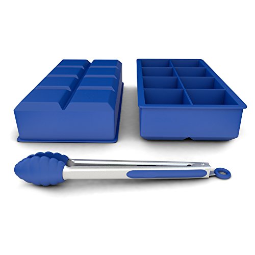 Big Silicone Ice Cube Tray and Large Ice Maker Mold, Set of 2 Plus 8in Multi-purpose Kitchen Tong and Bonus Ebook