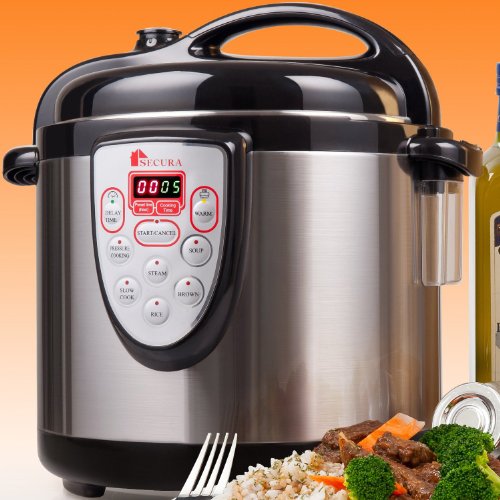Secura 6-in-1 Electric Pressure Cooker 6qt, 18/10 Stainless Steel Cooking Pot, Pressure Cooker, Slow Cooker, Steamer, Rice Cooker, Browning/Sauté, Soup Maker